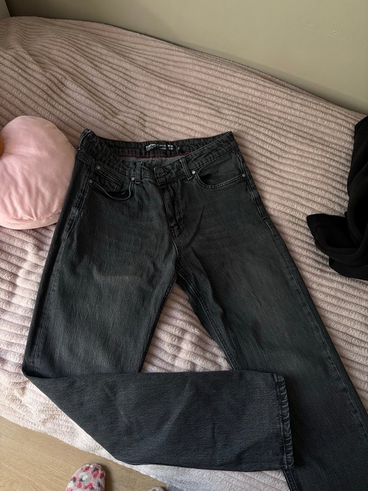 Gri renkte, normal kesim ve uzunlukta erkek denim pantolon. Tokalı detayıyla günlük rahat kullanıma uygundur.