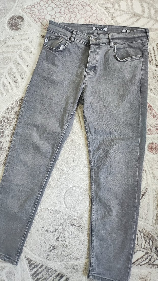 Gri renkli, regular fit erkek denim pantolon, bağcık detaylıdır. Sokak stili ve günlük kullanım için uygundur. Desensiz ve rahat bir görünüme sahiptir.