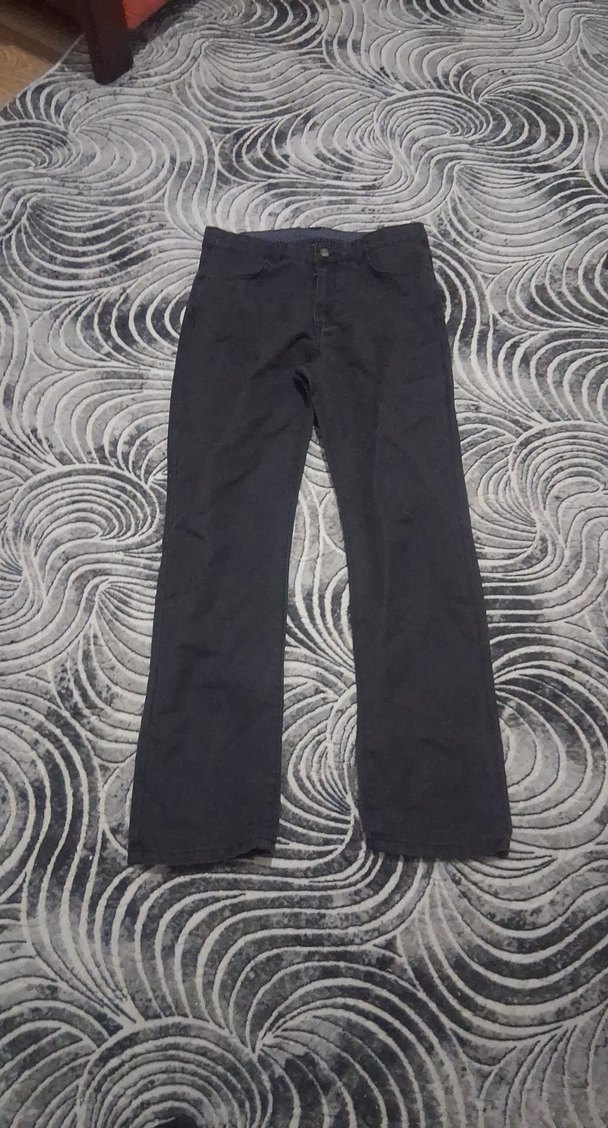 Gri renkli, regular fit kesim erkek denim pantolon. Düğmeli ve günlük sokak stili için uygundur. bel 36 boy 96