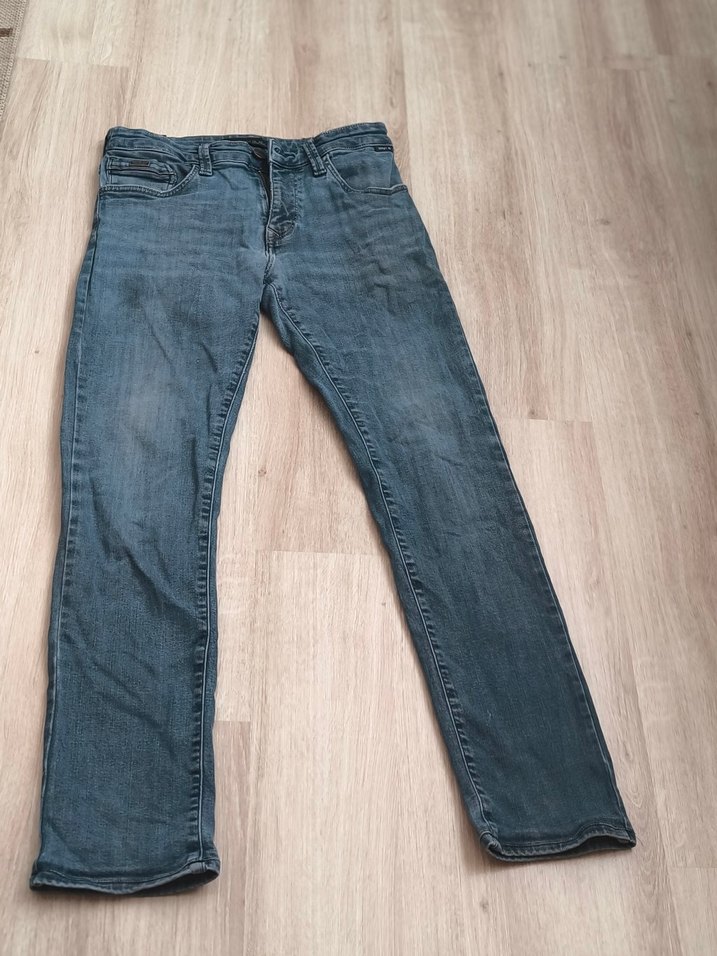 Gri renkli, regular fit kesime sahip denim pantolon. Normal boyda ve desen içermeyen bu model, günlük sokak stili için uygundur.Arka cebinde hafif yırtık var resimde görüldüğü gibi