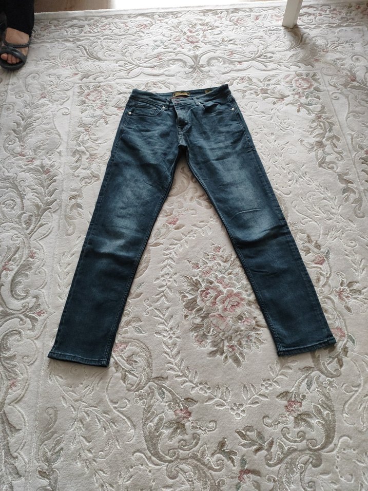 Gri renkte, regular fit ve normal boyda erkek denim pantolon. Tokalı detayı ve sade deseniyle günlük kullanıma uygun.