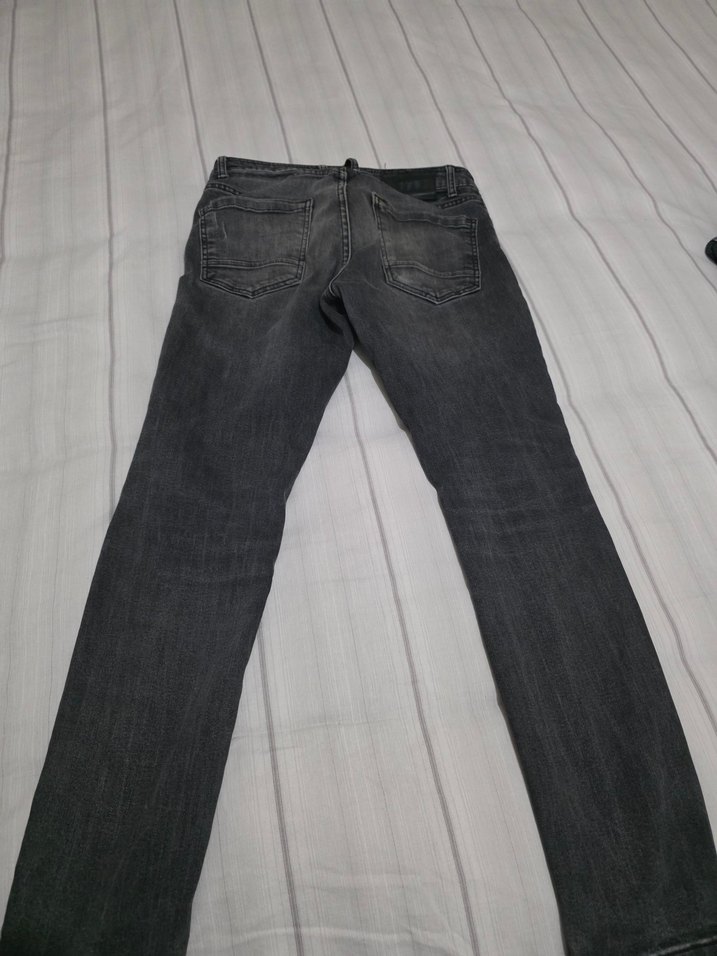 Gri renkte, regular fit ve kemerli detaylı erkek denim jean. Günlük kullanıma uygun, rahat ve dayanıklı kumaşlı.