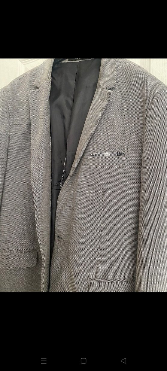 Gri renkte, düğmeli ve çentikli yakalı erkek ceketi. Normal kesim, uzun kollu ve midi boyda, sentetik kumaştan üretilmiştir. Ofis ve sokak tarzına uygundur.