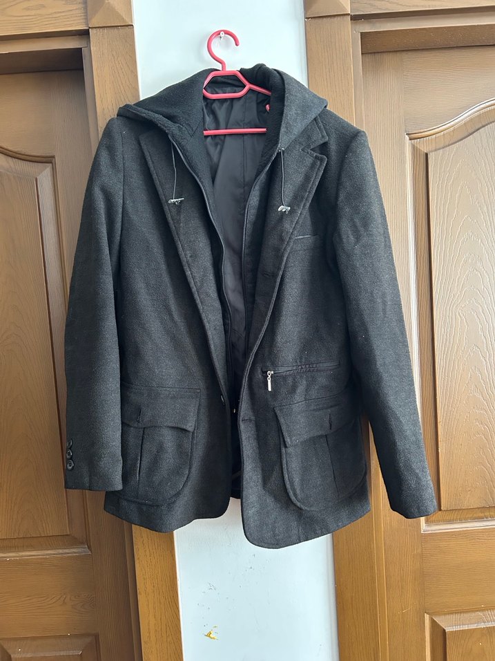 Siyah renkte, düğmeli, normal boy midi erkek ceket. Notch yaka ve uzun kollu, rahat kesim, sıcak tutan kumaştan üretilmiştir.