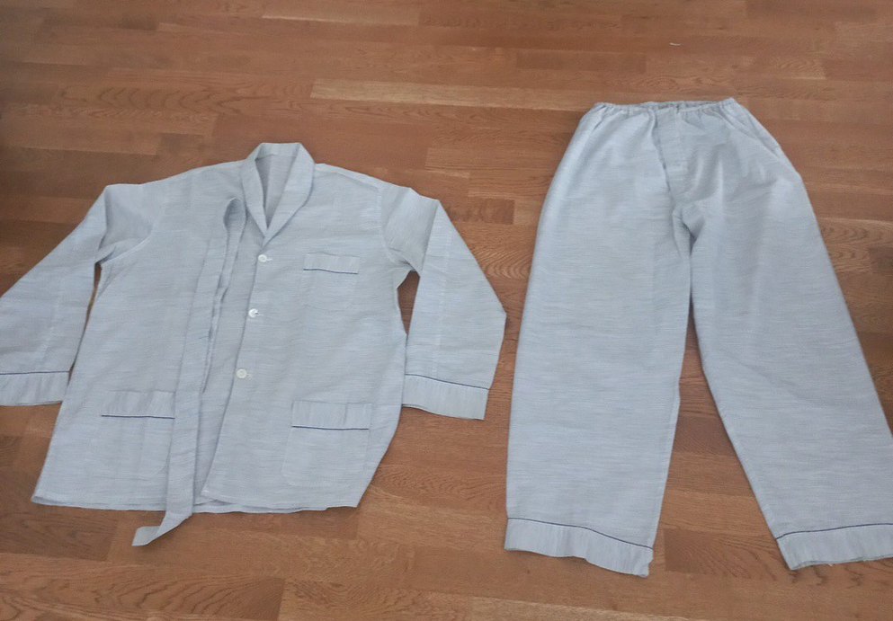 Gri renkte, düğmeli ve notched lapel yakalı erkek pijama takımı. Uzun kollu, rahat kesim ve sade tasarıma sahiptir. pijama üstünün Kumaş erimesi var bilerek alım yapınız