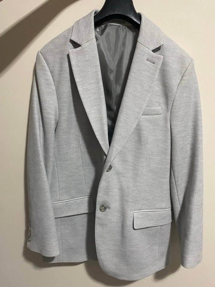 Gri renkli, düğmeli ve regular fit kesime sahip erkek takım ceketi. Notch yaka ve uzun kolludur, günlük ve ofis kullanımı için uygundur.