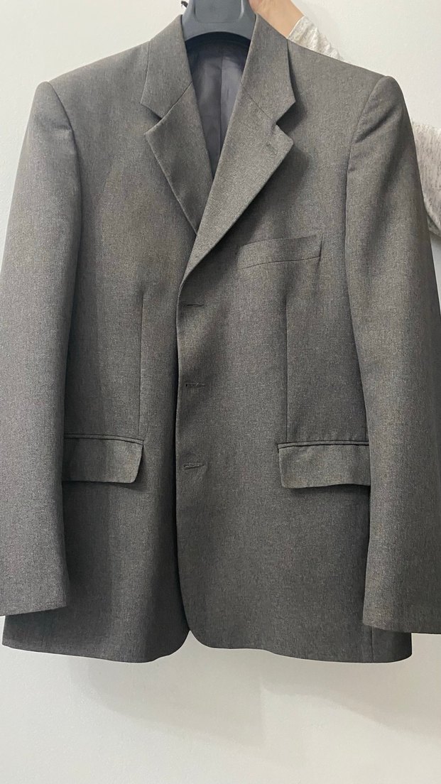 Gri renkte, düğmeli ve düz kesime sahip erkek takım elbise ceketi. Notch yaka ve uzun kollu, ofis ve iş ortamları için uygundur. Tek renk ve sade tasarıma sahiptir. Kışlıktır ve defosuzdur. 42 bedendir.
