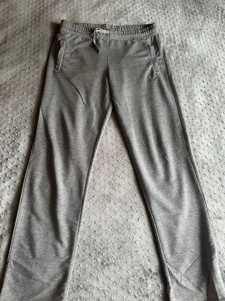 Gri renkli, bol kesim ve normal boyda kadın eşofman altı. Yumuşak sentetik kumaştan, fermuarlı ceplere sahip, günlük kullanıma uygun sade normcore tarzında. ♀️