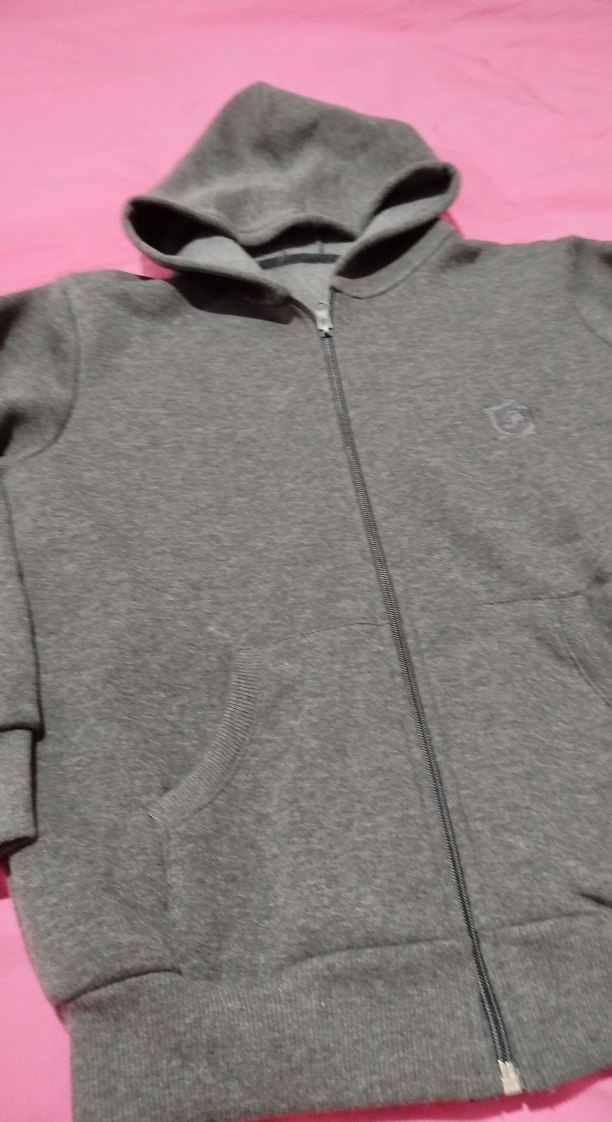 Gri renkte, fermuarlı ve kapüşonlu erkek sweatshirtü, uzun kollu ve yuvarlak yakalıdır. Yumuşak ve sıcak kumaştan üretilmiştir, günlük kullanıma uygundur. 3 iplik fermuarlı hırka