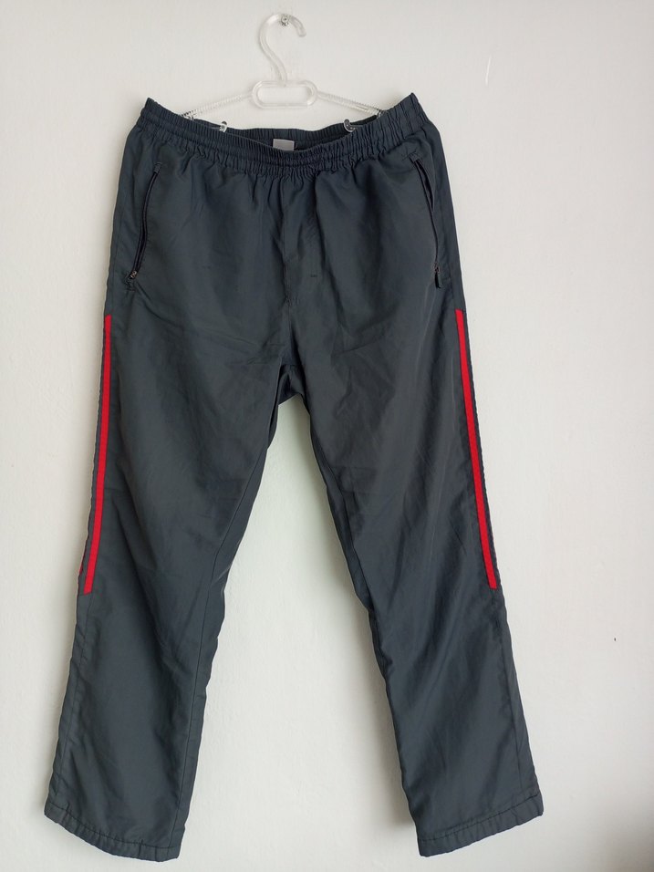 Gri renkli, fermuarlı ceplere sahip, sentetik kumaştan rahat ve bol kesim erkek . Trendy casual tarz için uygundur.