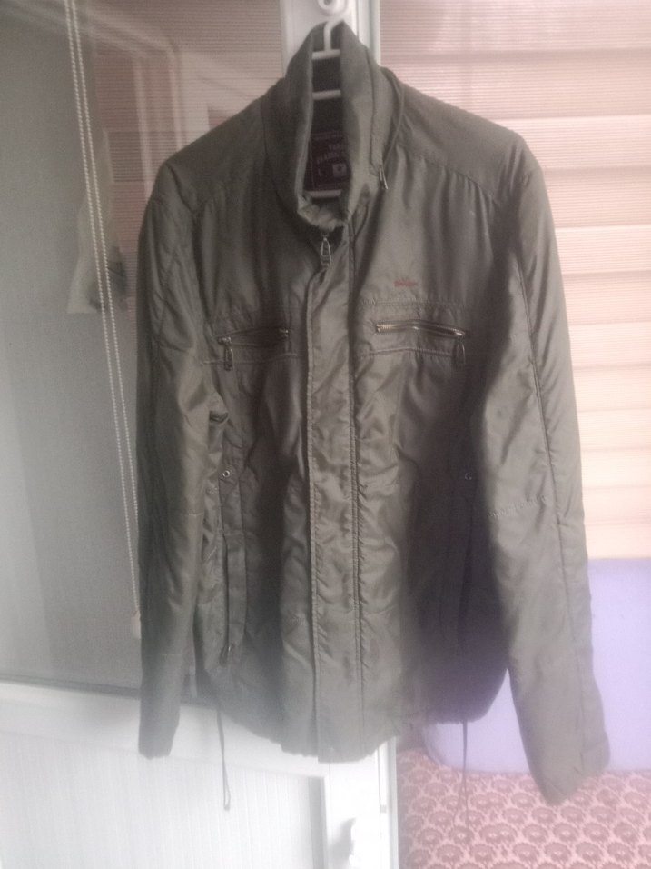 Gri renkli, fermuarlı cepleri olan, uzun kollu ve kruvaze yaka detaylı erkek ceket. Rahat kesimi ve yumuşak sentetik kumaşıyla günlük sokak stiline uygundur.