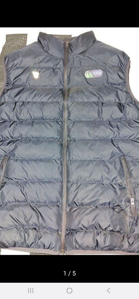 Fermuarlı ön ve iki fermuarlı cep bulunan, sentetik kumaştan yapılmış, gri renkli, kolsuz, orta uzunlukta, dar kesim erkek yelek. Günlük sokak stili için uygundur.
