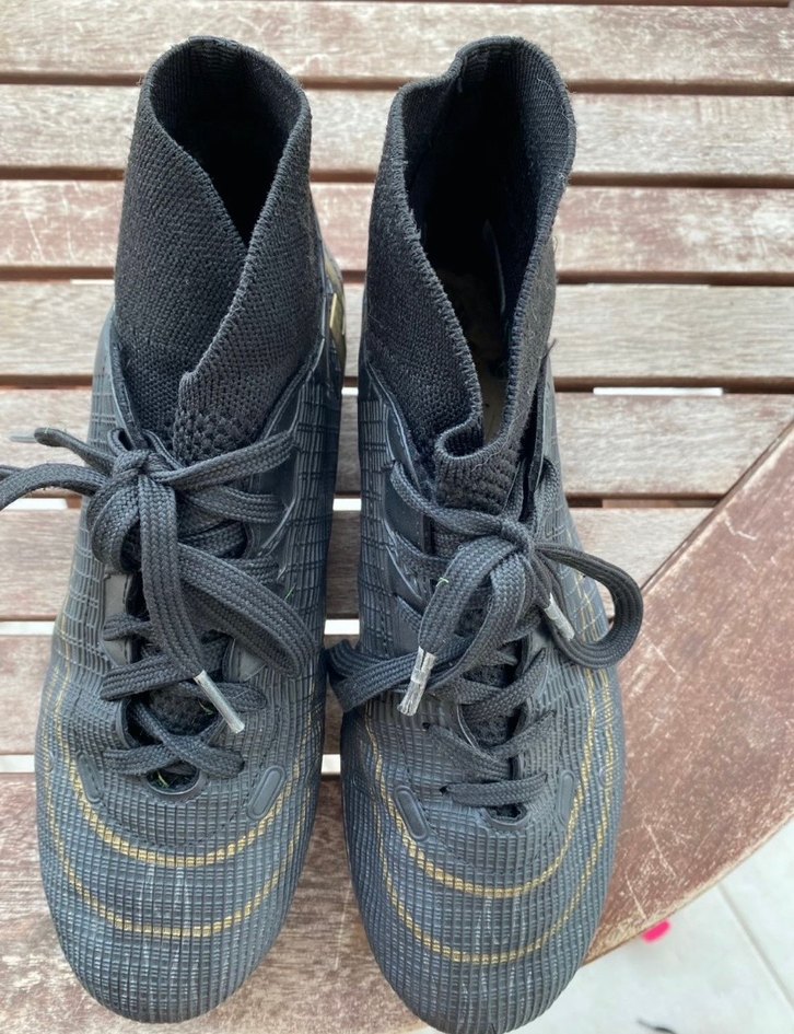 Gri renkli, Velcro ve bağcıklı kapama özellikli erkek futbol ayakkabısı. Kauçuk malzemeden, sportif ve çağdaş tasarımda. ⚽