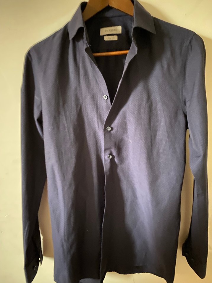 Gri renkliuzun kollu ve düğmeli erkek gömleği. Notched yaka ve regular fit ile ofis ve günlük kullanıma uygun