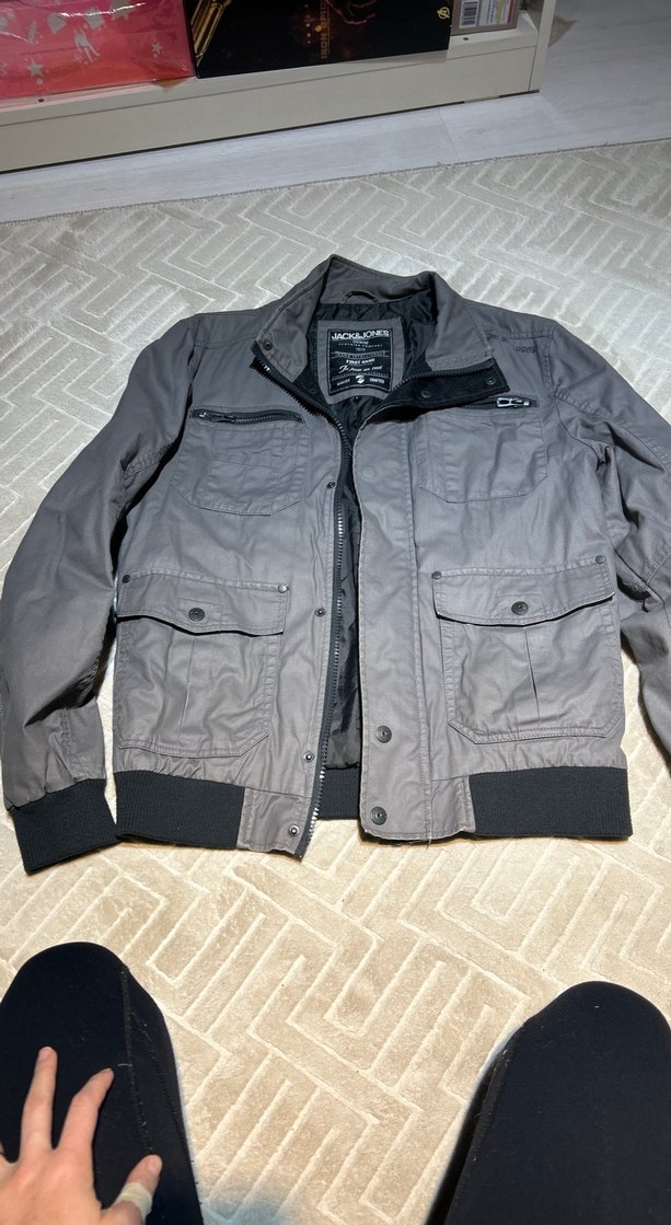Bu gri erkek ceketi, çıtçıtlı yakaya ve fermuarlı kapamaya sahiptir. Uzun kollu, normal kesim ve yumuşak sentetik kumaştan günlük kullanıma uygundur. Çoklu cepler ve ribanalı manşetler konfor sağlar.