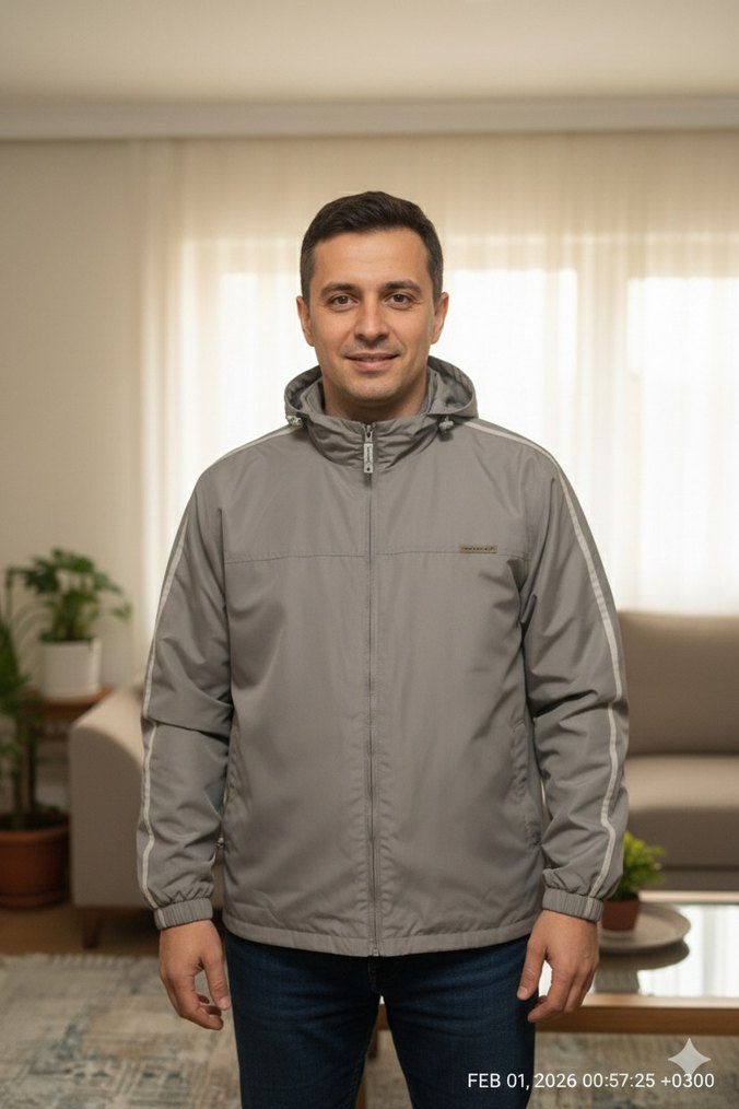 Gri Erkek Günlük Rahat Mont