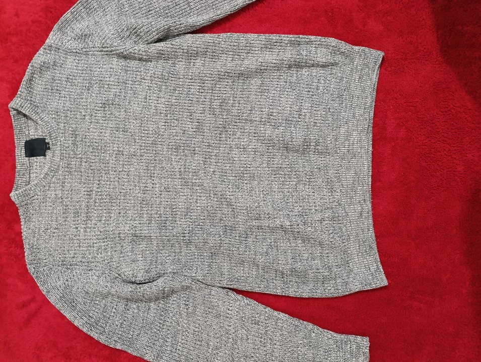 H&M markalı gri erkek triko kazak, rahat dokusu ve sokak stili için uygun şık görünüme sahiptir. M beden