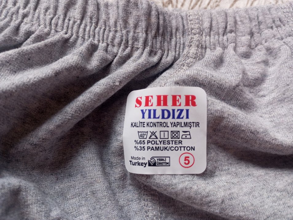 5 adet fiyatıdır Gri renkte, %65 polyester ve %35 pamuk karışımı kumaş etiketi. Kalite kontrolü yapılmış ve Türkiye'de üretilmiştir. ️
