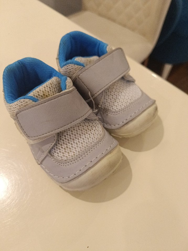 Gri renkli, Velcro bantlı, kauçuk tabanlı ve nefes alabilen file üst yüzeye sahip erkek çocuk ilk adım ayakkabısı. Basic sokak stili için uygundur.