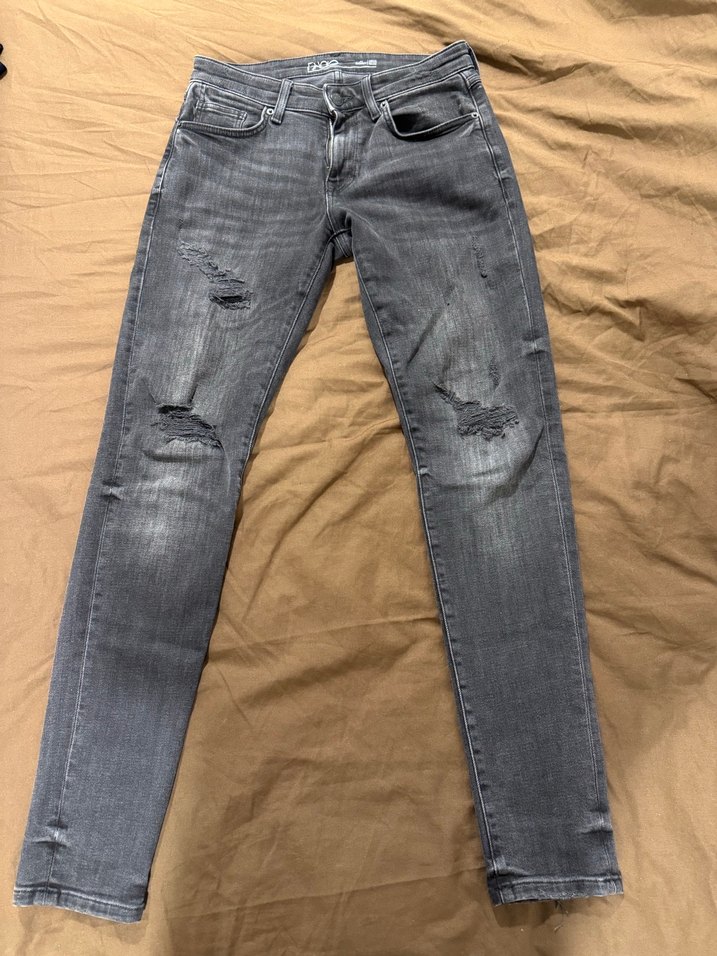 Ürünün sağ bacağı kısmında ki yırtığın iç kısmında ki yama yırtıldı biraz, diz belli edebiliyor. Onun haricinde yırtık vs bir şeyi yoktur. 41 bedendir.