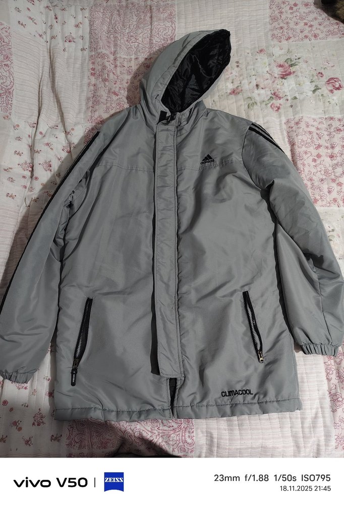 Gri renkli, kapüşonlu erkek rüzgarlık mont, fermuarlı ve uzun kollu. Yumuşak polar kumaştan, rahat kesim ve sokak stili için ideal.