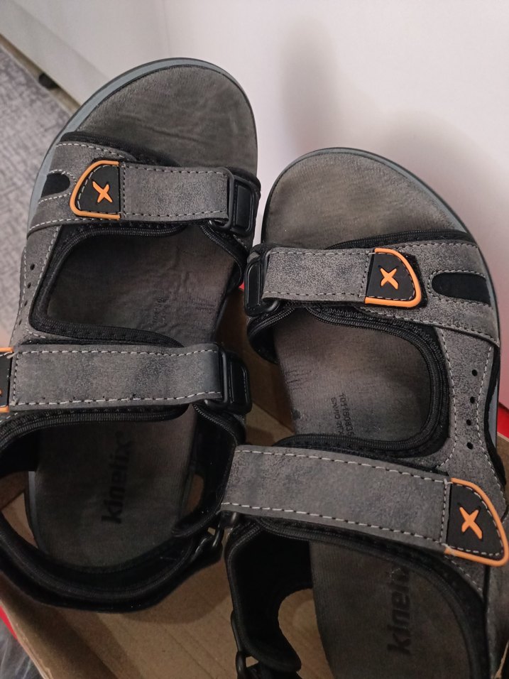 Gri baskılı kauçuk malzemeden, kayışlı erkek sandaletleri. Sokak stili ve açık hava kullanımı için rahat ve trend.