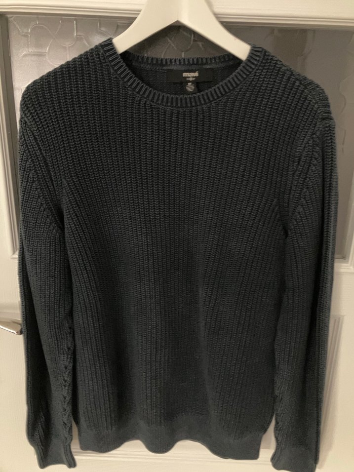 Gri renkli, örgü dokulu, bisiklet yaka ve uzun kollu bu erkek kazak rahat ve bol kesimdir. Günlük sokak stili için uygundur.
