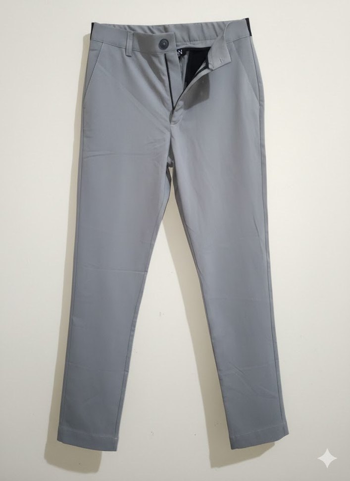 Gri renkte, kemerli ve regular fit kesime sahip erkek pantolonu. Pürüzsüz sentetik kumaştan üretilmiş, günlük kullanım için uygun streetwear tarzında.