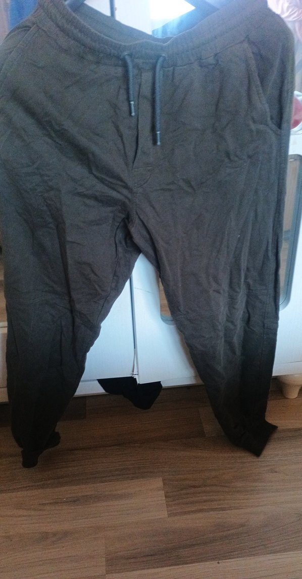 Gri renkli, keten kumaştan üretilmiş, bol kesim ve normal boy pantolon. Kemerli ve günlük sokak stili için uygun.