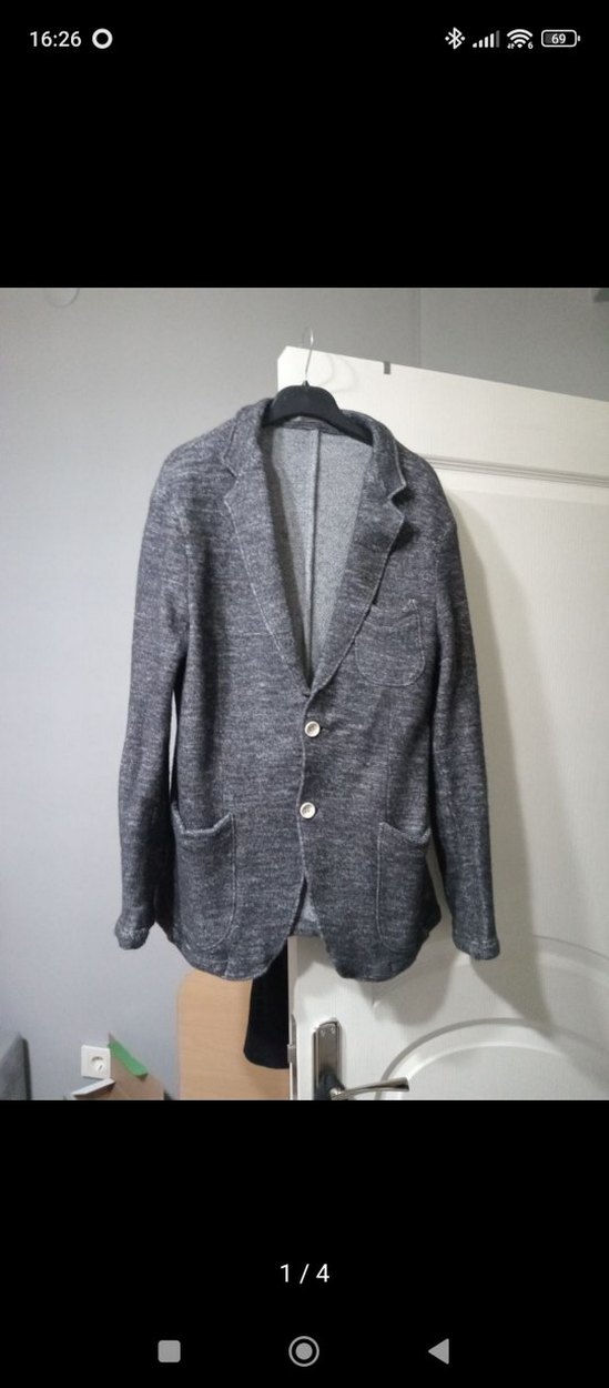 Gri keten kumaştan, düğmeli ve kesimli yakalı erkek ceketi. Regular fit ve uzun kolludur, günlük sokak tarzına uygundur. eni45 boy65