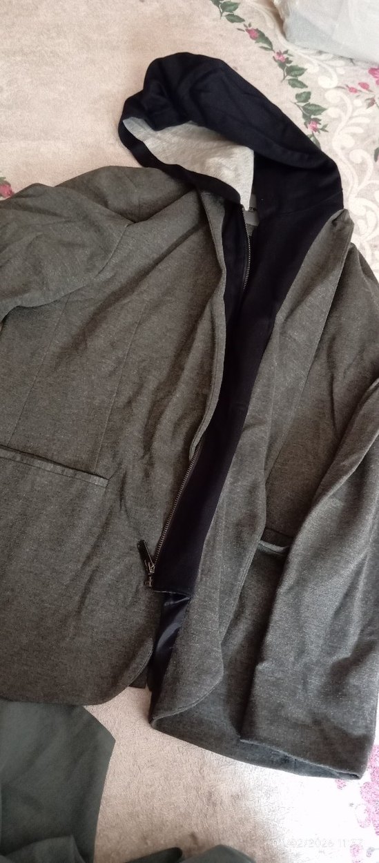 Gri renkte, keten kumaştan yapılmış erkek midi ceket. Notched lapel yakalı, fermuarlı ve normal kesimdir. Günlük kullanıma uygundur.