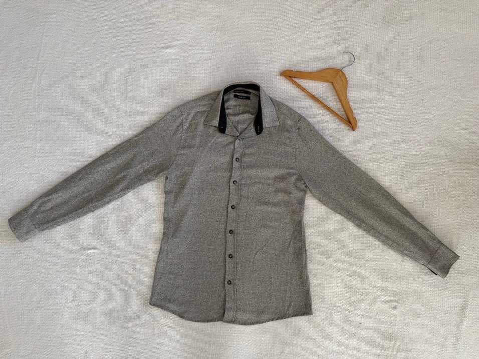Bu erkek gömlek, regular fit kesim, düğmeli ön ve yakalı tasarıma sahiptir. Nefes alabilen keten kumaştan yapılmış, uzun kollu ve gri renklidir.