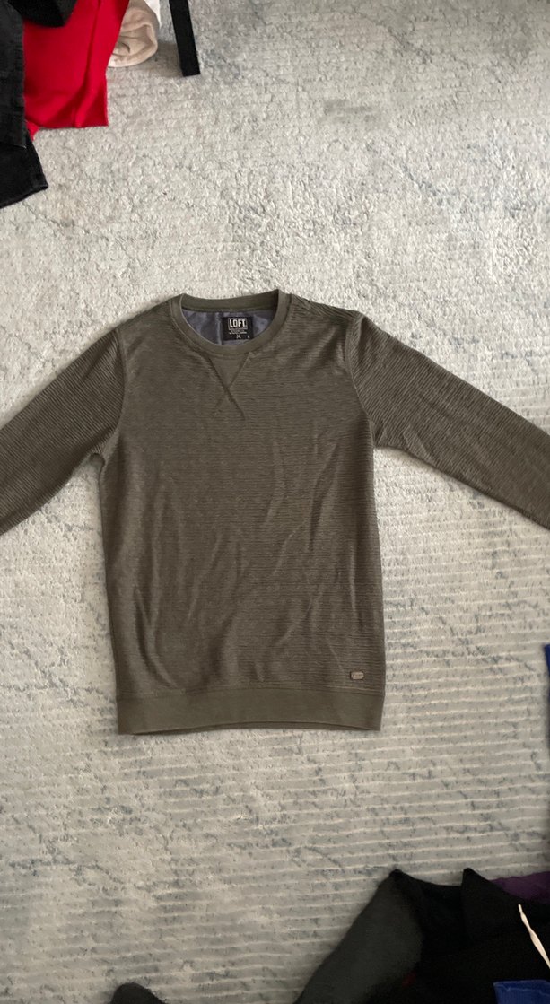 Gri renk, keten kumaştan yapılmış, uzun kollu ve yuvarlak yakalı, rahat kesim erkek sweatshirtü.