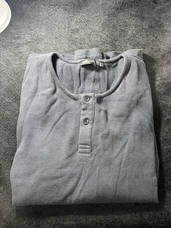 Gri renkte, keten kumaştan yapılmış, düğmeli ve yuvarlak yakalı, uzun kollu, bol kesim erkek tişörtü. Günlük kullanıma uygundur.