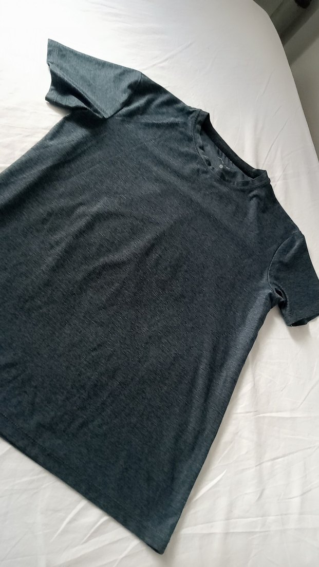 Gri renkte, kısa kollu, bisiklet yaka, rahat kesim erkek tişörtü. Yumuşak sentetik kumaştan üretilmiş, sade ve günlük kullanıma uygun.