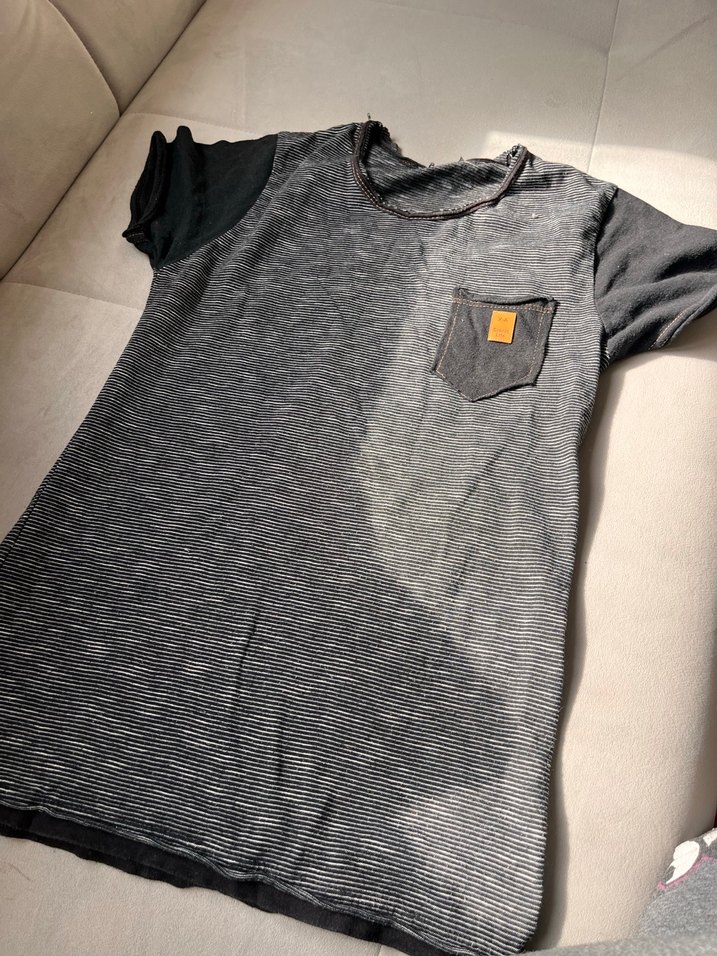 Gri renk erkek kısa kollu, salaş kesim tişört. Yumuşak sentetik kumaştan, günlük rahatlık ve sokak tarzı için küçük göğüs cebine sahip.