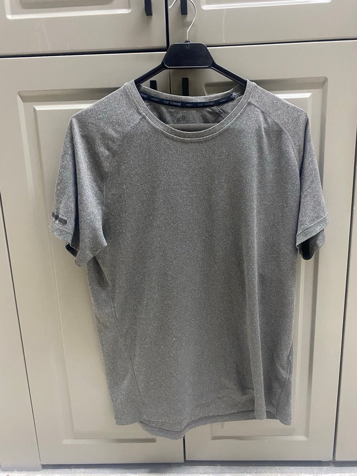 Gri renkli, kısa kollu, yuvarlak yaka erkek tişörtü. Salaş kesimi ve sentetik kumaşıyla rahat bir kullanım sunar. Desensiz, spor ve günlük stil için uygundur.