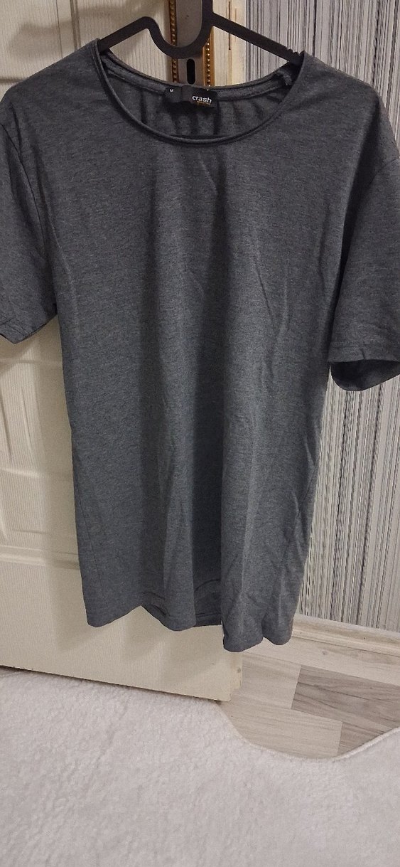 Gri renkte, yuvarlak yaka ve kısa kollu erkek tişörtü, salaş kesimi ve yumuşak sentetik kumaşıyla günlük rahat stil sunar.