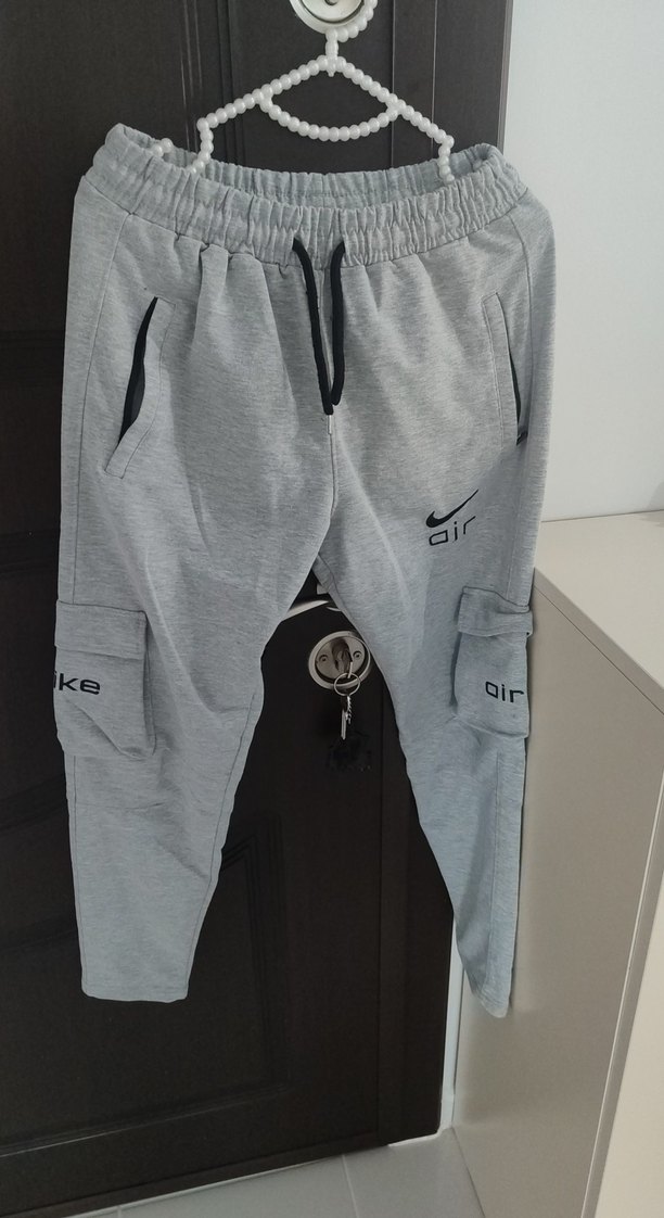 Gri renkli, bol kesim, kemerli kısa eşofman altı. Yumuşak kumaştan, cepleri ve sportif detaylarıyla dikkat çeker. Üzerinde "bir" yazısı vardır.