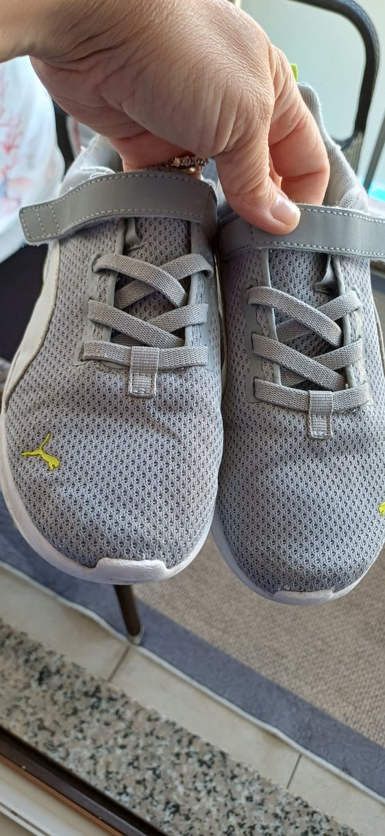 Nefes alabilir örgü üst kısmı ve kauçuk tabanı olan gri erkek çocuk spor ayakkabısı, cırt cırtlı kapama ile rahat kullanım sağlar. 35 numara