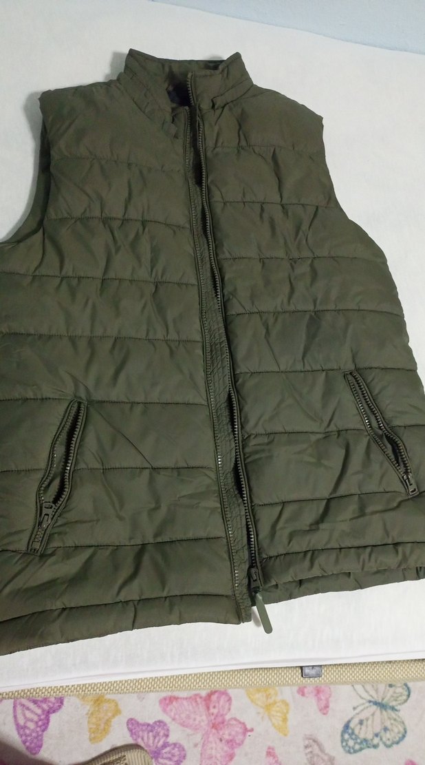 Sentetik kumaştan gri, fermuarlı ve cepli kolsuz yelek. bisiklet yaka ve sokak stiline uygun.