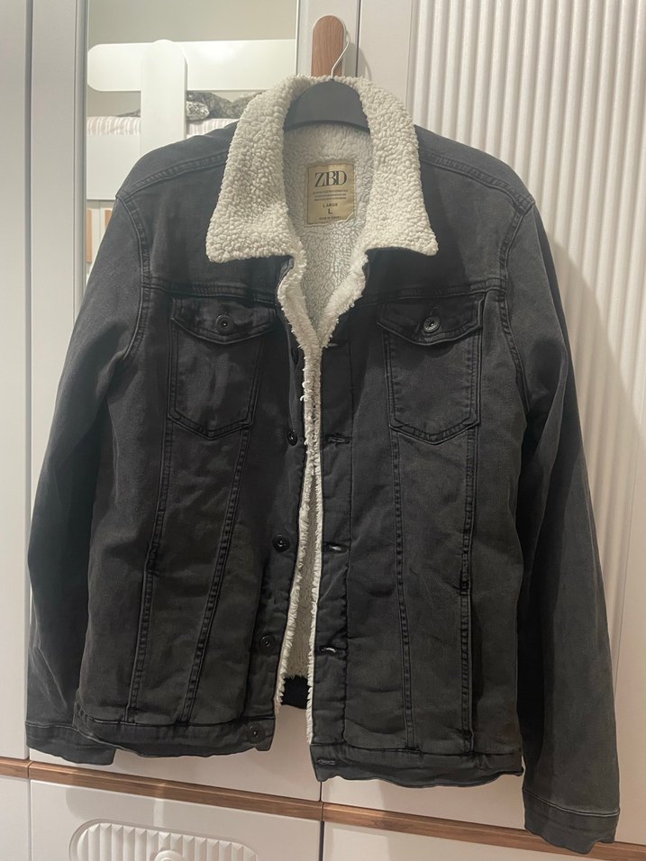 Gri Erkek Kot Ceket, Kürklü Detaylı