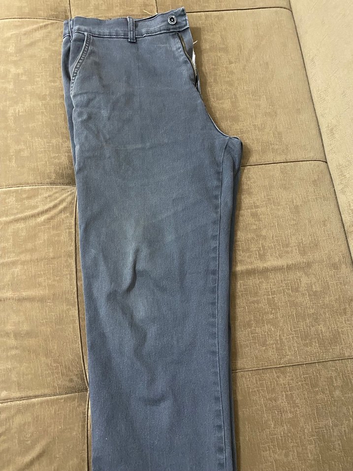 Gri renkte, normal boy ve regular fit kesime sahip erkek kot pantolon. yumuşak kumaş sayılı giyilmiş olup gayet iyi durumdadır