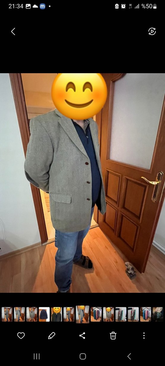 Gri renkli, kruvaze yaka ve düğmeli önü olan erkek ceket. Normal kesim, uzun kollu ve midi boyda, ofis için uygundur. Desensiz ve trend casual tarzda.