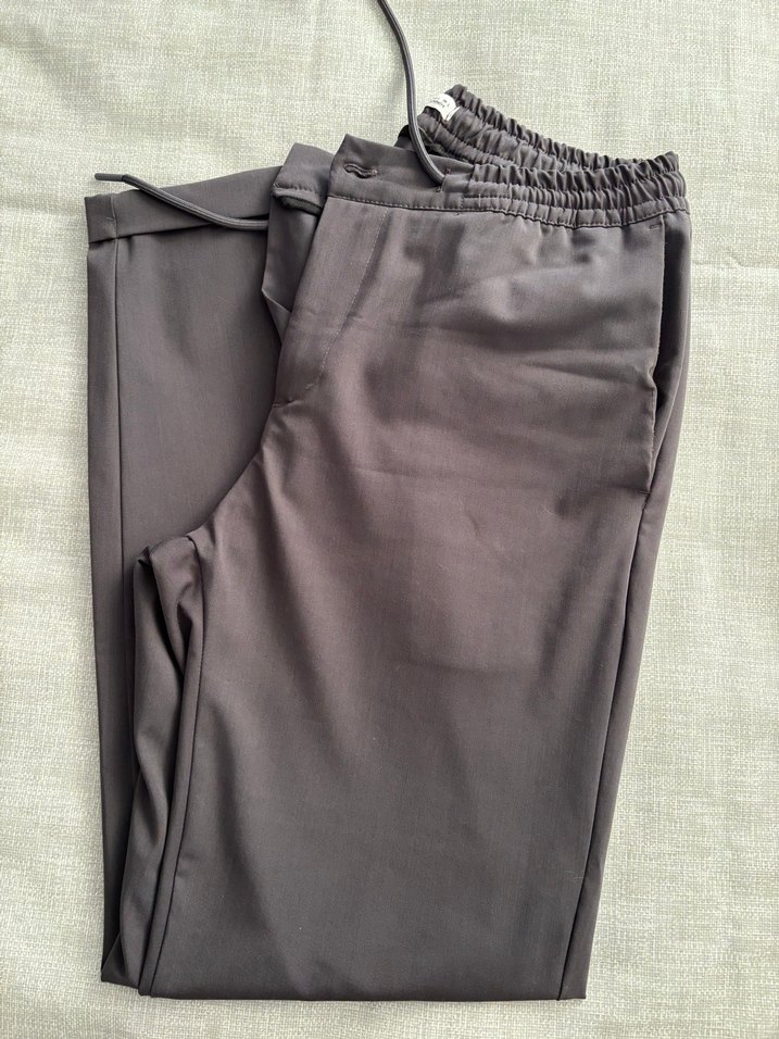 Gri renkli erkek pantolon, normal kesim rahat lastikli bel bandı ile. Düz ve desensiz, gündelik kullanıma uygun rahat sentetik kumaştan yapılmıştır.