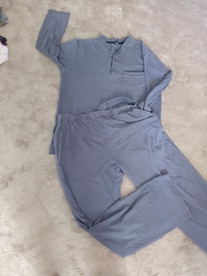 Gri renkte, uzun kollu ve yuvarlak yakalı erkek pijama takımıdır. Rahat kesimi ve midi boy alt pantolonu ile gündelik şıklık sunar.