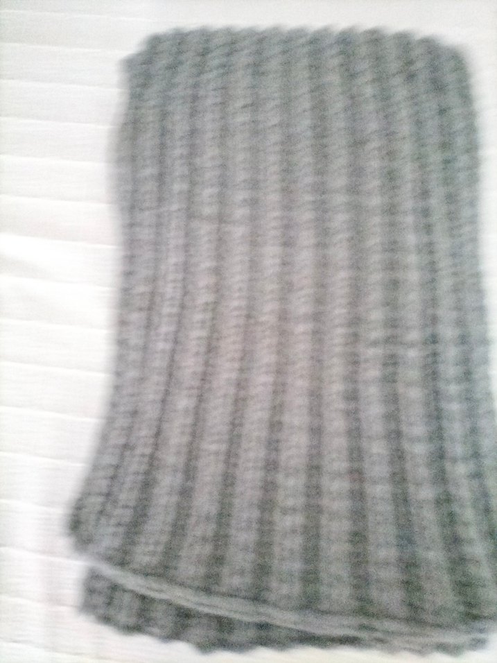 Gri renkte, sade ve rahat örgü dokusuna sahip erkek midi boy atkı. el orgusu