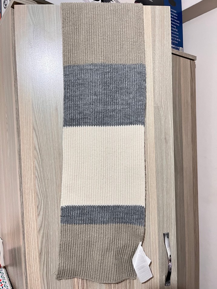 Gri ve bej tonlarında blok renkli, orta uzunlukta erkek atkısı. Yumuşak dokusu ve çağdaş tasarımı ile rahat ve şık bir seçimdir.