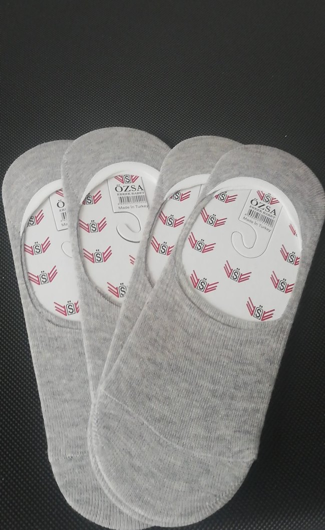 Gri renkte, rahat ve desen içermeyen erkek mini çoraplar. OZSA etiketli, kısa ve vücuda oturan yapıda.