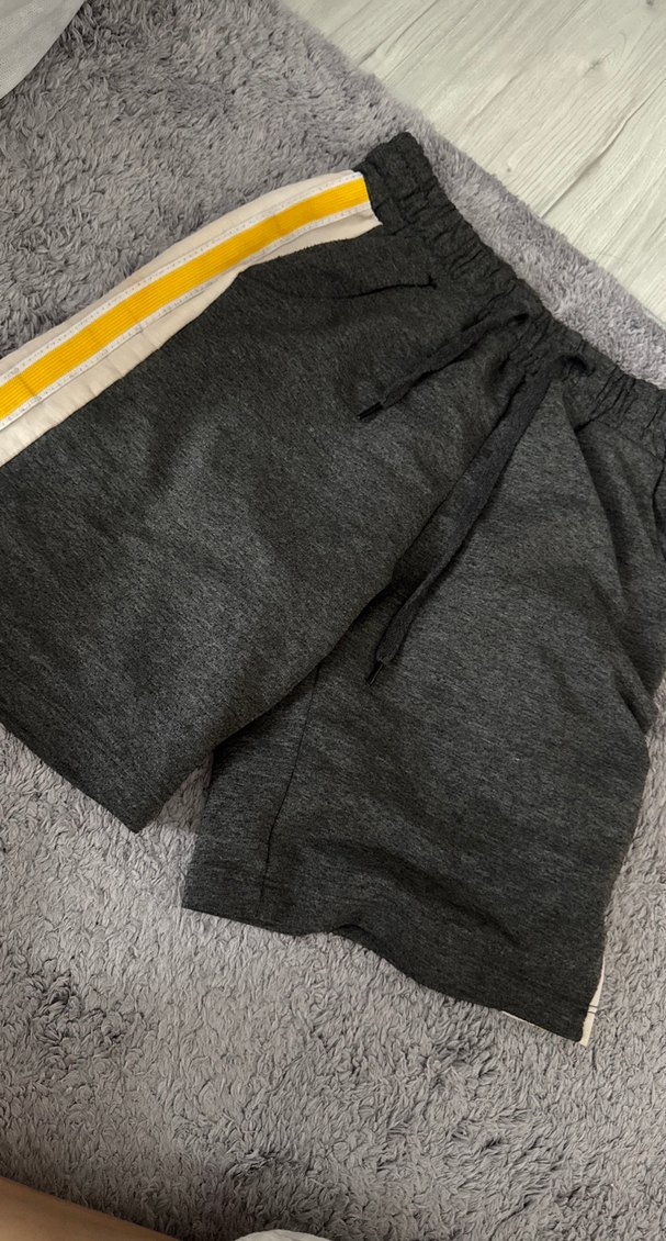 Gri renkli, bel kemerli, rahat kesim erkek mini eşofman şortu. Yanlarda sportif şerit detayları bulunur. Rahat ve sıcak tutan kumaştan üretilmiştir.